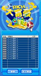启动游戏后会显示如左画面。左边是频道列表,选择适合自己的频道,双击频道名称进入。 |